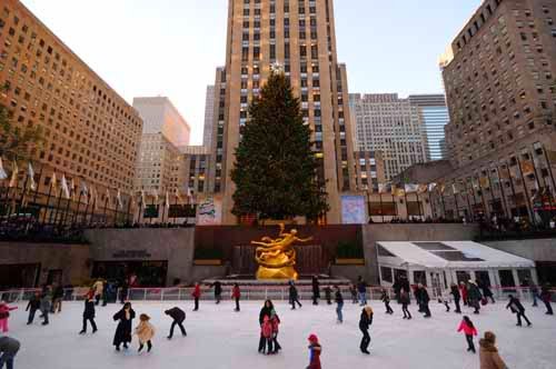 A pista mais conhecida da cidade é, sem dúvida, a The Ice Skate Rink at Rockefeller Center. Milhões de visitantes planejam viagens para a cidade todos os anos só para apreciar os patinadores e suas manobras bem debaixo da famosa árvore de Natal e da estátua dourada de Prometeu, muitos outros vão enfrentar longas filas para entrar e aproveitar. Rodeada por restaurantes famosos, lojas e pontos de referência, patinar no Rockefeller Center é uma experiência única em Nova York. O preço da entrada na pista varia ao longo da temporada. Entre 19 de novembro de 2010 e 07 de janeiro de 2011, para os adultos US$19,00 e para as crianças US$12,50 cada dia. Aluguel de patins a partir de 05 de novembro de 2010, até 07 de janeiro de 2011, custa US$9,00.