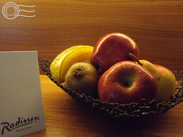 com a família, concordo plenamente, mas, se você tem uma rotina de reuniões, horários apertados, “vai pra cá”, “corre pra lá” e tudo no ponteiro do relógio, o que você mais quer quando tem uma pausa? Descanso, sossego, conforto? Isso é meio óbvio e é o mínimo que se espera de qualquer hotel, mas se você tiver docinhos de chocolate, tortinhas, uma bela e suculenta cesta de frutas frescas e água fresquinha quando chega ao seu quarto a perspectiva muda, não muda? E ser tratado com carinho, atenção e um toque totalmente pessoal? Não melhora qualquer mau humor, cansaço ou dor de cabeça?