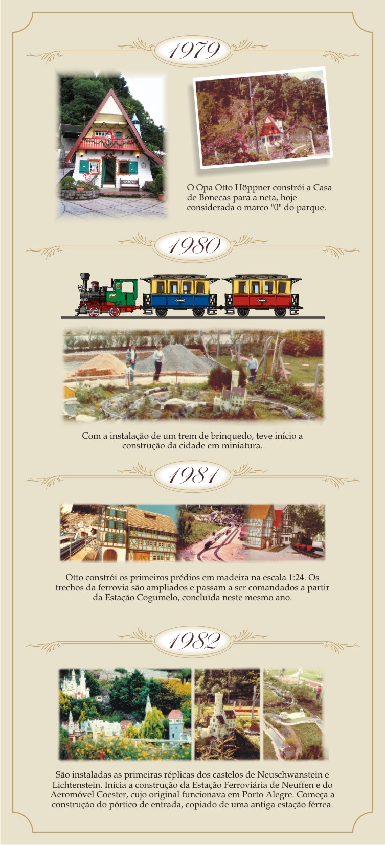 No ano de 1982, foram instaladas as primeiras réplicas dos castelos de Neuschwanstein e Lichtenstein, iniciada a construção da Estação Ferroviária de Neuffen e do Aeromóvel Coester, cujo original funcionava em Porto Alegre. Também começa a construção do pórtico de entrada, copiado de uma antiga estação férrea. Essas obras deram a forma de parque para o espaço e o prepararam para a inauguração. Só em 15 de dezembro de 1983 acontece a abertura oficial. A data é significativa por representar o momento formal em que os Höppner assumem o seu compromisso, de gerações (hoje a terceira), de promover o lazer, o entretenimento e a cultura a partir de obras artísticas da humanidade, reproduzidas em escala 1:24.