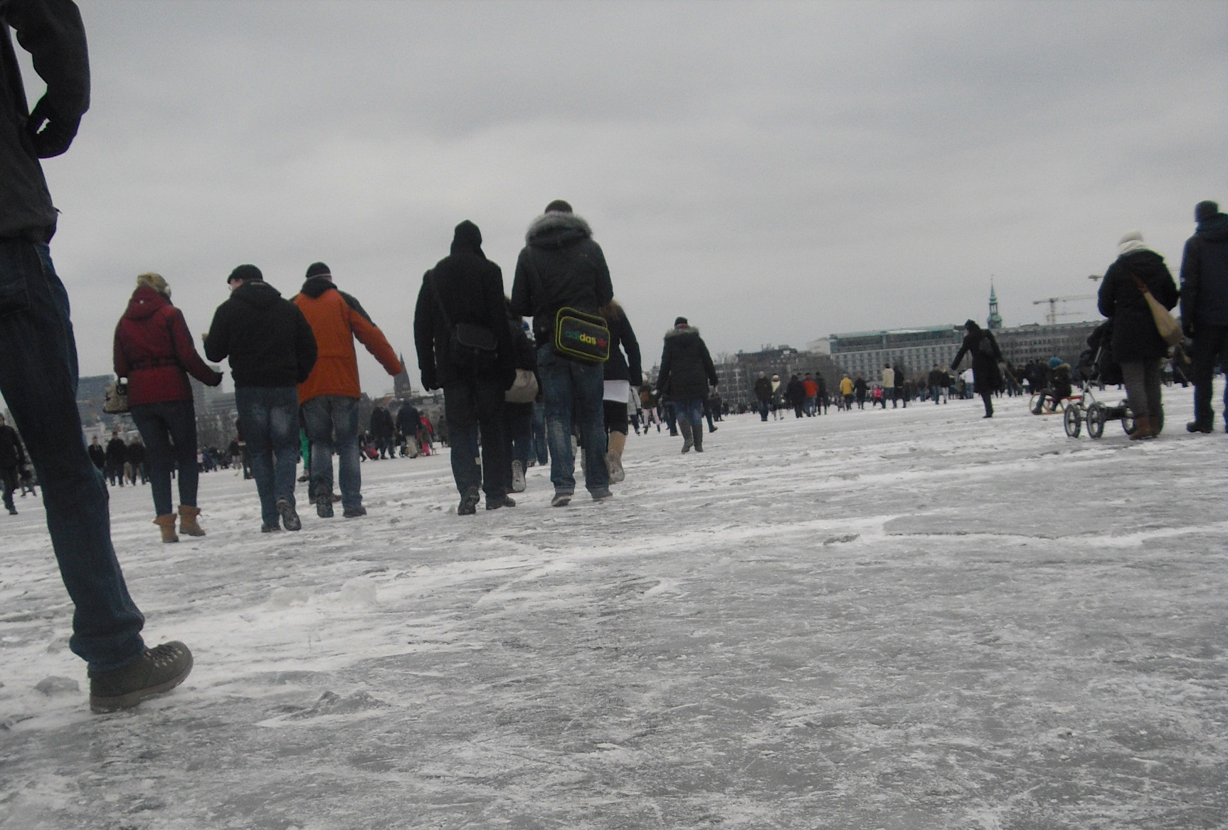 Não seria esse um famoso “programa de índio”? Depende do ponto de vista e do quão preparado você está para a atividade. No ano passado, por exemplo, o principal lago da cidade de Hamburgo conhecido por Alster congelou e atraiu uma multidão no final de semana. Segundo o corpo de bombeiros, responsável por inspecionar e liberar o lago para o passeio público, apenas no sábado da liberação o Alster recebeu um milhão de visitantes. Um verdadeiro “Piscinão de Ramos” do inverno, com direito a grupos de adolescentes frenéticos jogando hóquei no gelo, crianças em trenós, cachorros deslizando de forma desengonçada, gente patinando nas mais diversas direções e claro um festival de tombos inigualáveis.
