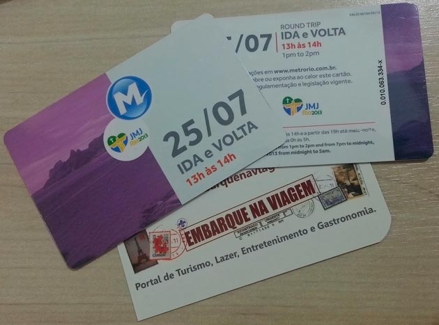 A venda de cartões especiais do metrô para os eventos da JMJ 2013 – Jornada Mundial da Juventude, Acolhida e a Via Sacra, que ocorrerão, respectivamente, no dias 25 e 26/07 na Praia de Copacabana, com a presença do Papa Francisco, acontece em 11 estações do MetrôRio, entre as 9 e 21 horas.