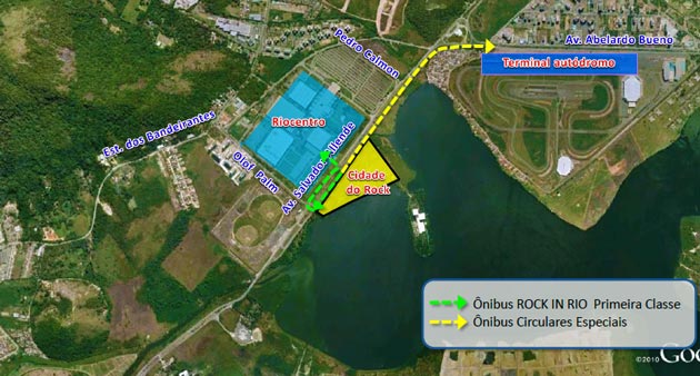 • A chegada ao evento deverá ser feita SOMENTE utilizando ônibus de linhas regulares, a linha especial de ônibus (que fará a ligação Alvorada – Cidade do Rock) e o serviço especial de ônibus Rock in Rio;