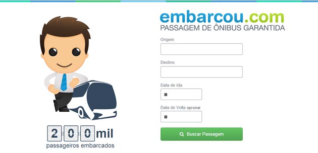 O site Embarcou.com (www.embarcou.com) é a primeira opção para quem planeja viajar de ônibus. Com cobertura em todos os estados brasileiros (e é possível encontrar passagens também para outros países da America do Sul), o site é muito prático e oferece formas de pagamento variadas, como boleto bancário e cartões de crédito ou débito.