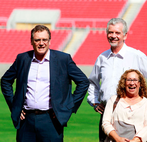 Na foto estão: José Fortunati (à direita de Jérôme Valcke Valcke) e a Secretária de Turismo Abgail Pereira. Foto: Reuters/Edison Vara