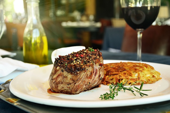 Filet ao Poivre – ao molho de 3 pimentas com batata rostie