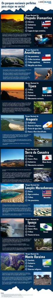 Conheça no infográfico produzido por CarroAluguel.com quais são os parques nacionais perfeitos para viajar no verão, e planeje incluí-los em sua próxima viagem.