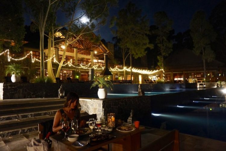 São duas opções, o Restaurante Pura, onde é servido o café da manhã, almoço e jantar. Também o Rio Bar, ao lado da piscina, que serve frutos do mar e oferece petiscos, sanduíches e saladas, você pode optar pelo salão ou ficar na própria piscina. Além destes restaurantes que ficam dentro do hotel existe a opção de fazer a sua refeição no restaurante Basta Pedro em Puerto Camacho ou no Narbona Wine Lodge que é membro do Relais & Chateau. Nós testamos todos, jantamos no Narbona e Rio Bar, almoçamos no Basta Pedro e Pura. O que nós mais gostamos?! Difícil escolher, mas nosso jantar no restaurante Rio Bar ao ar livre, sob lua cheia, luz de vela e muito frutos do mar é um desses que guardaremos com carinho em nossa memória.