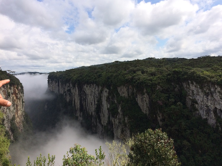 Se você prefere programas mais leves, há trilhas contemplativas de fácil acesso no Canyon Itaimbézinho. Elas podem ser visitadas durante o verão, porém é importante ressaltar que você corre o risco de pegar neblina nesta estação do ano, o que reduz a visibilidade dos Canyons. Aconteceu comigo, na manhã em que fomos visitar o Canyon Itaimbézinho estava tudo tomado por uma neblina densa, mas como disse meu guia de turismo pé quente: “Tenha paciência, vamos esperar um pouquinho que vai abrir!” Não é que o Andrino é pé quente mesmo! E quando abriu meus amigos, eu poderia ficar horas olhando a paisagem, simplesmente sensacional.
