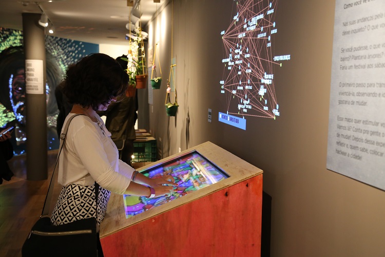 O quê? ‘Hackeando Meu Rio’ é uma instalação interativa com visualização de dados sobre os desejos para o futuro da cidade. Um dos espaços apresentado na exposição ‘Rolé pelo Rio Hackeado’