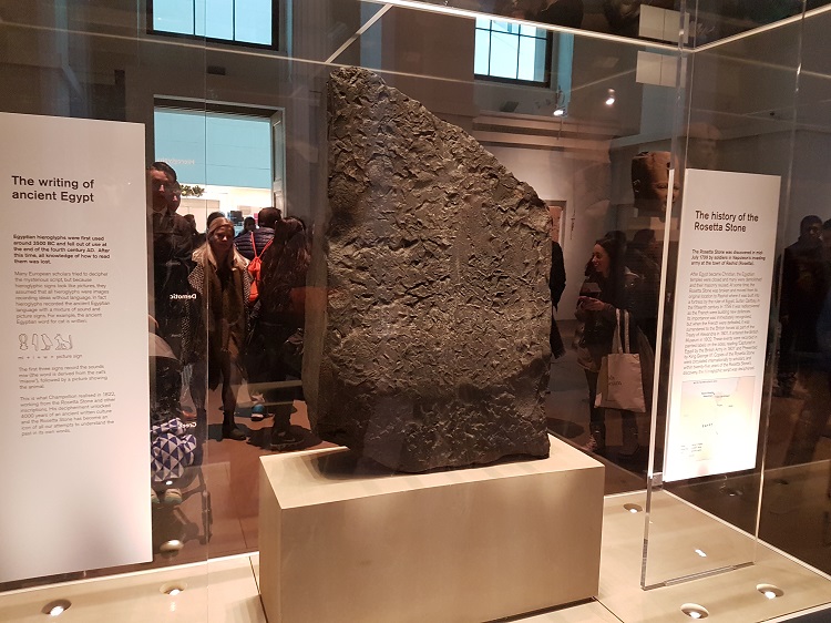 A Pedra de Rosetta – Pedra com inscrições em três línguas, que foi a chave para decifrar os hieróglifos egípcios.