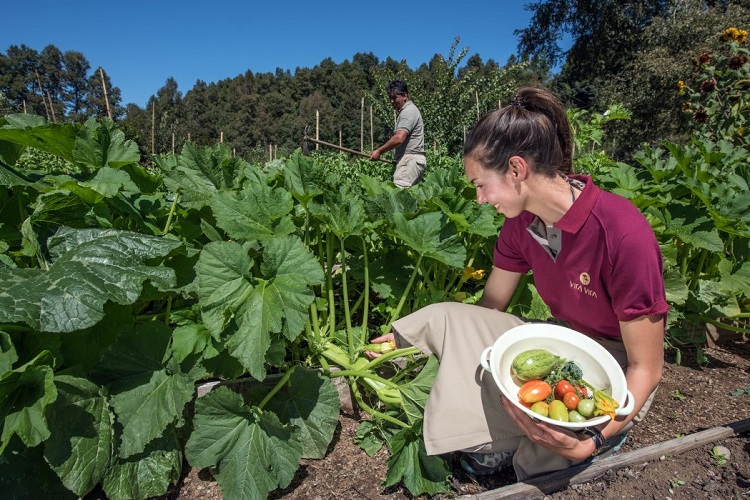 Junto aos exuberantes jardins paisagísticos do hotel Shanti Maurice, nas Ilhas Maurício, encontra-se uma horta, onde são cultivados ingredientes frescos e orgânicos para os pratos do dia. No local são produzidas mais de trinta variedades de ervas e vegetais e, dependendo da época, salsa, alecrim, manjericão, hortelã e coentro são cultivados, juntamente com vegetais como beterraba, berinjela, brócolis e cebola.