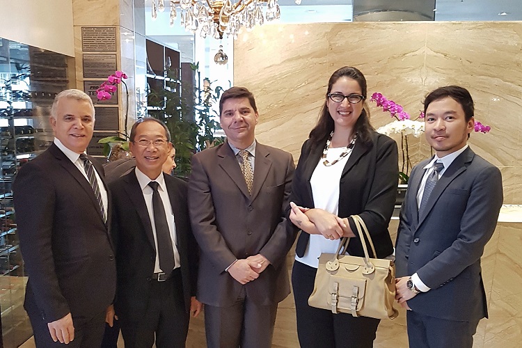 O Gerente de negócios internacionais, José Geraldo, o Sr. Surasak Suparat – Embaixador da Tailândia no Brasil, Ricardo Crispim – Gerente comercial de congressos e eventos da rede Windsor de hotéis, Naira Amorelli – Portal Embarque na Viagem e o Primeiro-Secretário, Sr. Kosin Phonmang. | International Business Manager, José Geraldo, Mr. Surasak Suparat – Ambassador of Thailand to Brazil, Ricardo Crispim – Commercial Manager of Congresses and Events of the Windsor Hotels Network, Naira Amorelli – Embarque na Viagem and First Secretary, Mr. Kosin Phonmang. Photo: Eduardo Madeira