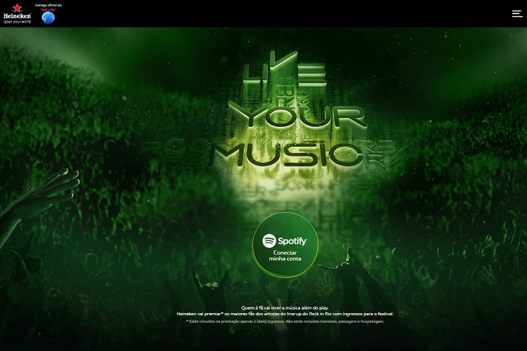 A Heineken, em conjunto com a plataforma de streaming Spotify, levará fãs das bandas do Rock in Rio para viverem a música intensamente no festival.