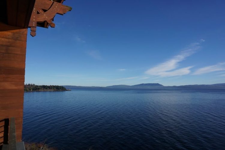 Nosso quarto contava com uma cama king size e outra de solteiro, mesa de jantar com 4 lugares, mesa de escritório, tv, um ótimo closet, banheiro espaçoso com banheira e uma sacada debruçada sobre o lago e vista espetacular.