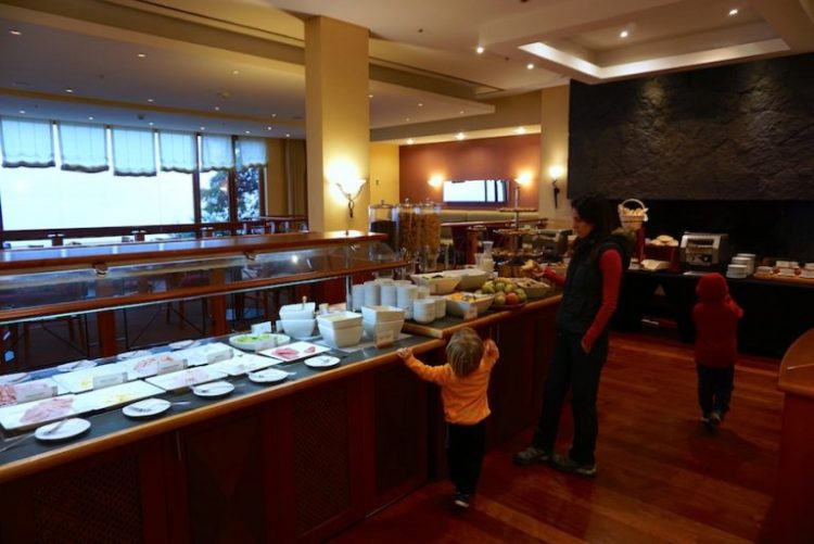 O hotel fica em terreno cheio de árvores e uma praia que deve ser uma delícia no verão. Para nós que escolhemos o destino no inverno por causa da neve e ensinar os meninos a esquiar, aproveitamos pouco a área externa que também conta com uma piscina e deck voltados para o imenso lago Villarrica.