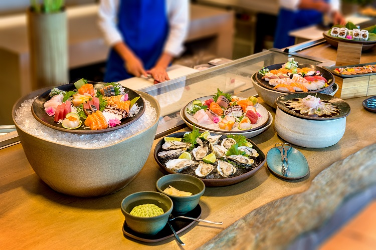 No menu, destacam-se pratos reconhecidos como uma variada seleção de sushis e sashimis. Você vai encontrar também opções de pratos quentes como o arroz Gohan, sopas, noodles; além de saladas e conservas japonesas. As robatas, espetinhos de carne, frango, peixe e legumes também roubam nossos olhares. Ao todo, são seis belíssimas estações com opções variadas, incluindo sobremesas. Uma mais deliciosa que a outra, reserve um espacinho para elas.