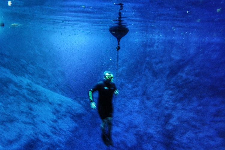 Mergulhadores que possuem certificação avançada ultrapassam a camada de algas e, ao atingirem 30 metros de profundidade, se deparam com águas transparentes.