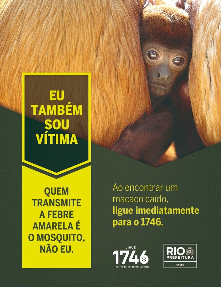 A Vigilância Sanitária do Rio de Janeiro lançou uma campanha, no Parque da Catacumba, na Lagoa, para impedir que mais macacos sejam mortos. Com o slogan “Eu também sou vítima”, a iniciativa tem como objetivo conscientizar a população carioca sobre o perigo que a cidade corre se a matança dos primatas continuar e que o macaco não é só vítima, mas um grande aliado no combate à febre amarela.