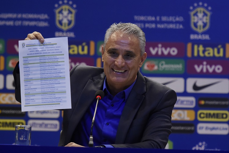 Mais de 80% dos chamados atuam no futebol europeu – 19 no total. Três jogam no Brasil, e um na China. São eles: GOLEIROS: Alisson – AS Roma (ITÁLIA) | Cássio – Corinthians-SP | Ederson – Manchester City (INGLATERRA). DEFENSORES: Danilo – Manchester City (INGLATERRA) | Pedro Geromel – Grêmio-RS (BRASIL) | Filipe Luís – Atlético de Madrid (ESPANHA) | Marcelo – Real Madrid (ESPANHA) | Marquinhos – Paris Saint Germain (FRANÇA) | Miranda – Internazionale de Milão (ITÁLIA) | Fagner – Corinthians-SP (BRASIL) | Thiago Silva – Paris Saint Germain (FRANÇA). MEIO CAMPISTAS: Casemiro – Real Madrid (ESPANHA) | Fernandinho – Manchester City (INGLATERRA) | Fred – Shakhtar Donetsk (UCRÂNIA) | Paulinho – Barcelona (ESPANHA) | Philippe Coutinho – Barcelona (ESPANHA) | Renato Augusto – Beijing Guoan (CHINA) | Willian – Chelsea (INGLATERRA). ATACANTES: Douglas Costa – Juventus (ITÁLIA) | Firmino – Liverpool | (INGLATERRA) | Gabriel Jesus – Manchester City (INGLATERRA) | Neymar – Paris Saint Germain (FRANÇA) | Taison – Shakhtar Donetsk (UCRÂNIA).
