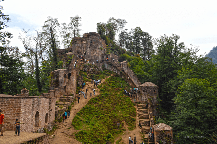 É preciso atravessar uma rota sinuosa e montanhosa em florestas densas para chegar a este castelo único e muito bonito. O Castelo Rudkhan, de 2,6 hectares, fica nos dois cumes de uma montanha que se estende por 1.550 metros. É um complexo militar e suas 42 torres ainda estão intactas.