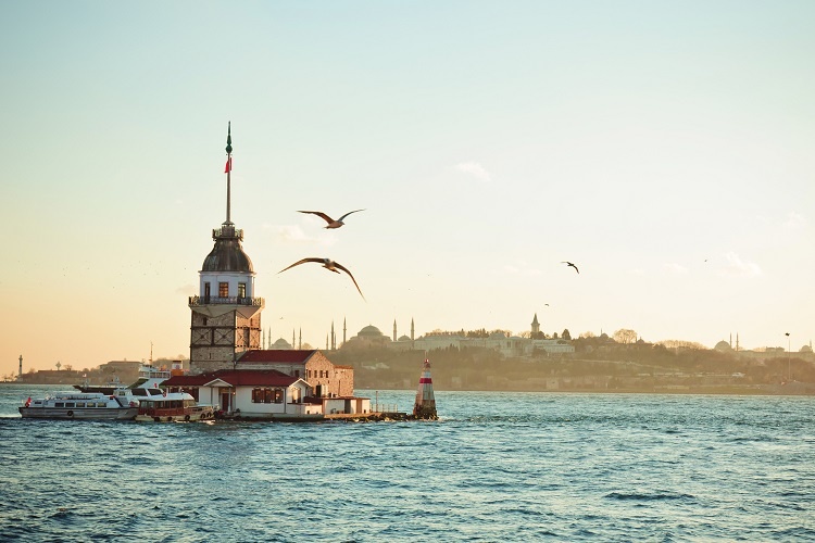 Antes de ser invadida pelos otomanos, Istambul era parte do Império Romano, conhecida primeiro como Império Bizantino e, posteriormente, como Constantinopla. Hoje, muitas partes da cidade refletem a arquitetura bizantina do passado. O lugar mais fotografado de Istambul mostra exatamente isso: uma pequena ilha a 200 metros da costa, na entrada sudoeste do Estreito de Bósforo. A Kiz Kulesi, também conhecida como Torre de Leandro, foi construída originalmente pelo antigo general ateniense Alcibíades.