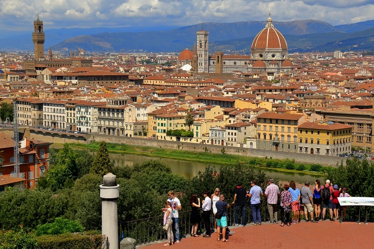 Muitos dos cartões-postais da cidade podem ser observados a partir da Piazzale Michelangelo, que fica em uma pequena montanha ao sul do centro da cidade. Os turistas buscam a praça para ter uma vista panorâmica de Florença e, claro, tirar muitas fotos.