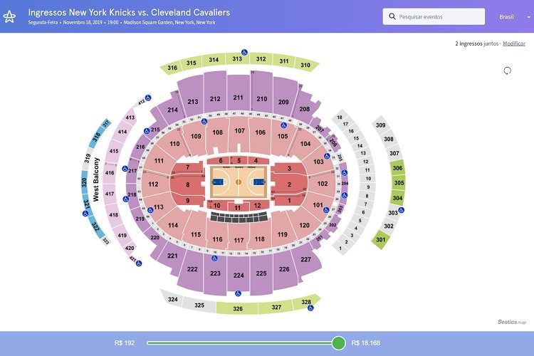 O processo de compra é bastante simples: você vai encontrar diferentes tipos de entrada de acordo com o preço, e no mapa você pode perceber o ponto de vista, referente a cada setor.